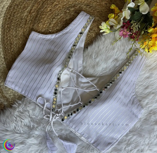 It is designed for women and ladies, this mirror work blouse is a great choice for those who love fashion. It is a perfect blend of style and comfort, which makes you stand out at every event. Add this stunning white blouse to your collection and shine with confidence!