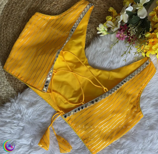 It is designed for women and ladies, this mirror work blouse is a great choice for those who love fashion. It is a perfect blend of style and comfort, which makes you stand out at every event. Add this stunning yellow blouse to your collection and shine with confidence!