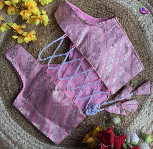 Cute Brocode Backless Halter Neck Zari Woven Ladies Baby Pink Blouse for Party | 1682
