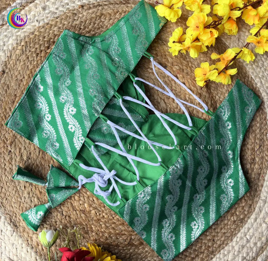 Cute Brocode Backless Halter Neck Zari Woven Ladies Green Blouse for Party | 1682