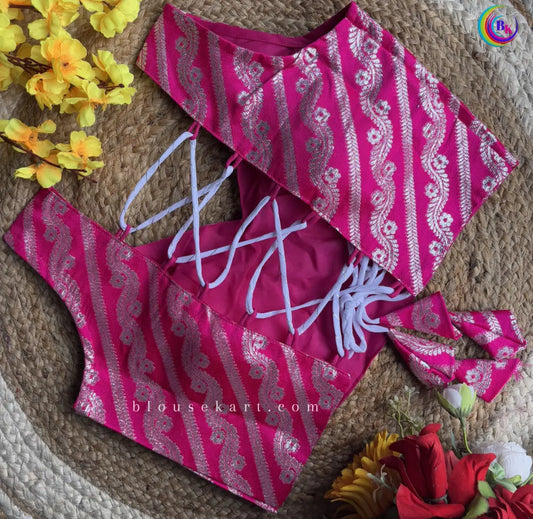 Regular price Rs. 409.00Regular priceUnit price / perRs. 777.00Sale price Rs. 409.00Upgrade your ethnic look with this beautiful backless halter neck Pink blouse. Made from Brocode fabric, it feels soft and looks stylish. The backless design adds a bold touch, while the halter neck gives a trendy look.
