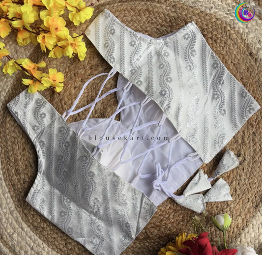 Cute Brocode Backless Halter Neck Zari Woven Ladies White Blouse for Party | 1682