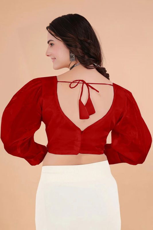 Stylish Organza Women Boat Neck Puff Sleeve Jimmy Choo Red Blouse for Party | 1098