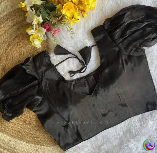 Stylish Organza Women Boat Neck Puff Sleeve Jimmy Choo Black Blouse for Party | 1098