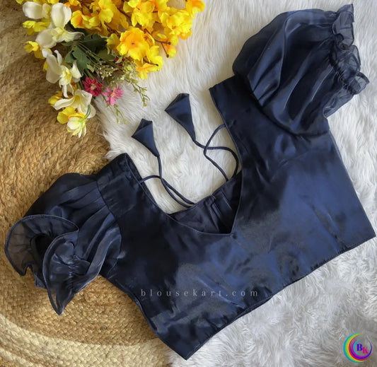 Stylish Organza Women Boat Neck Puff Sleeve Jimmy Choo Navy Blue Blouse for Party | 1098
