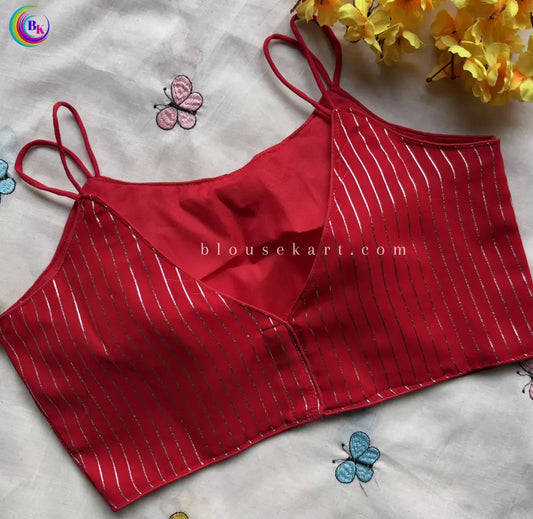 Regular price Rs. 379.00Regular priceUnit price / perRs. 699.00Sale price Rs. 379.00This elegant red georgette sleeveless striped work blouse is a perfect mix of style and comfort, ideal for weddings, parties, and festive occasions. The boat neck and sleeveless design give it a modern yet graceful look. The silver-striped pattern adds a touch of glamour which makes it a must-have for special events.